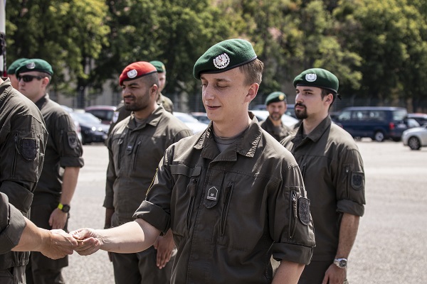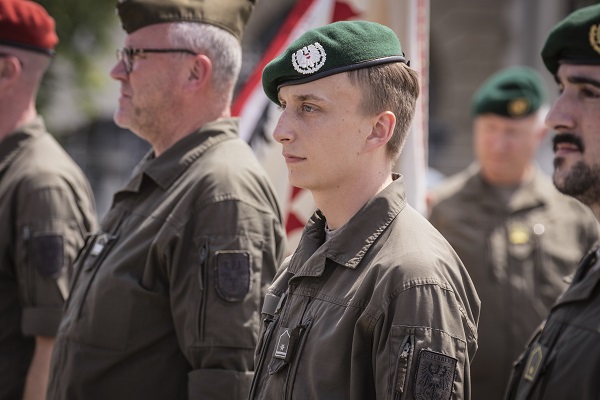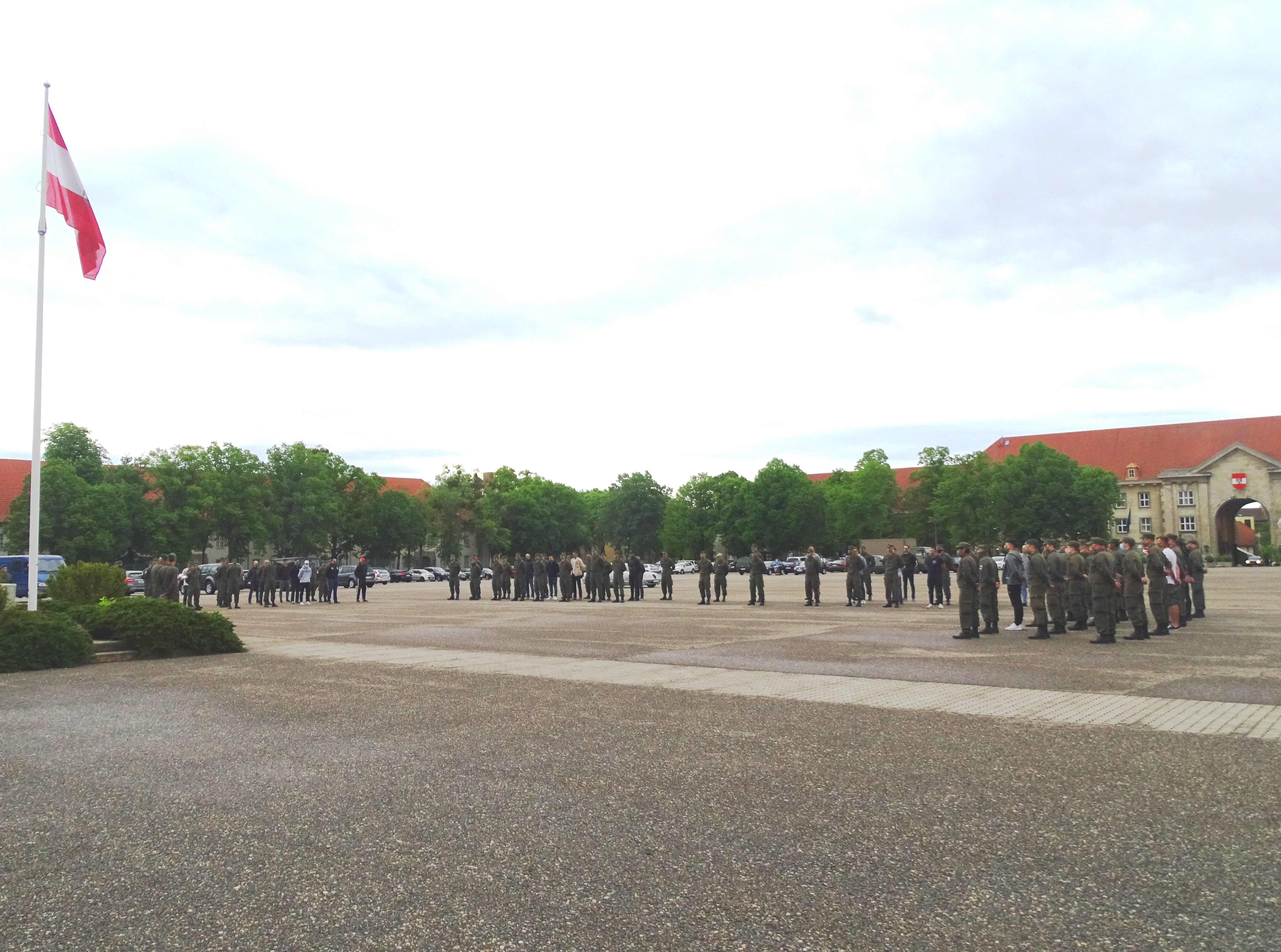 4) Die angetretenen Milizsoldatinnen und -soldaten beim abschließenden Festakt bei „Jägerwetter“ in der Maria Theresien-Kaserne
