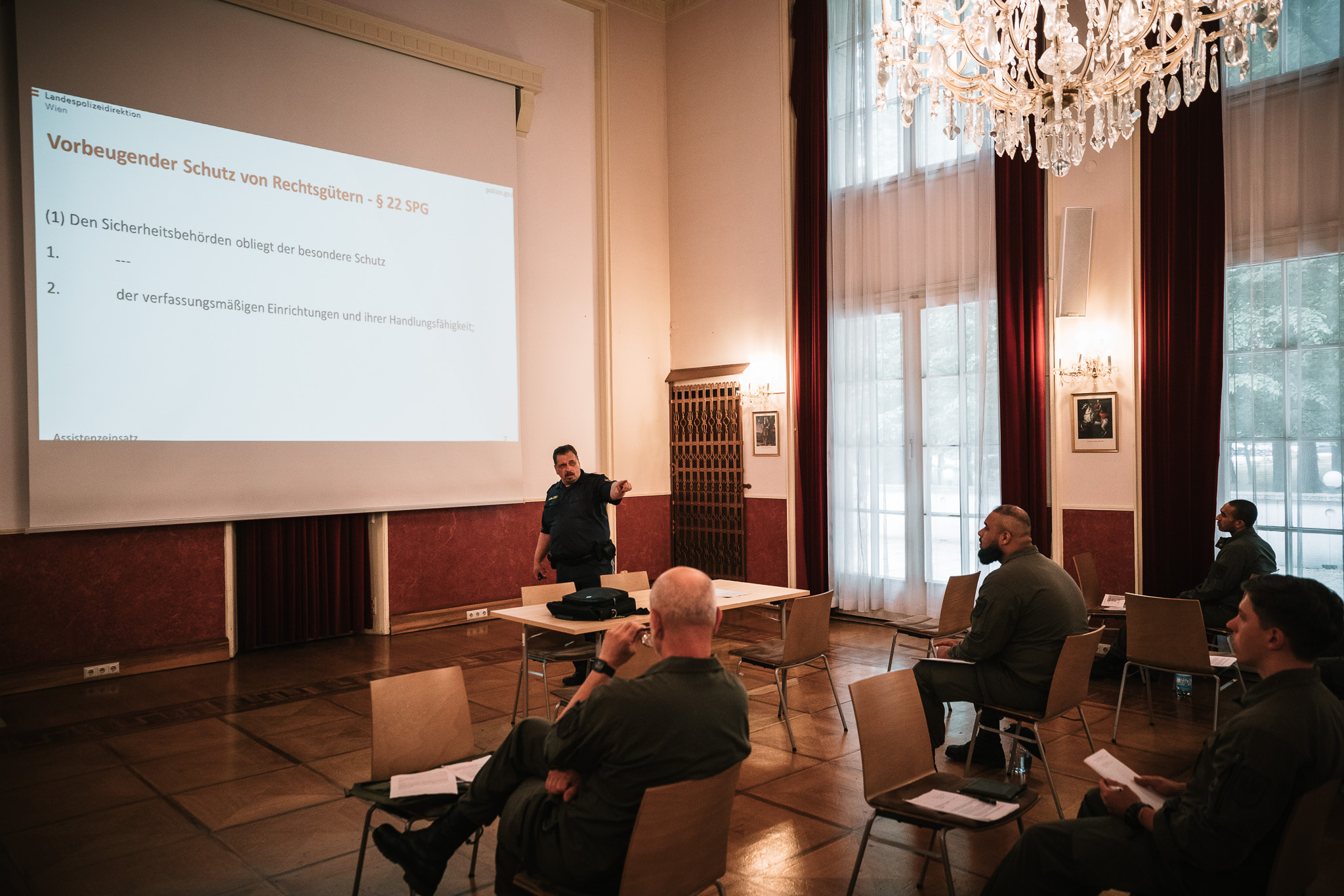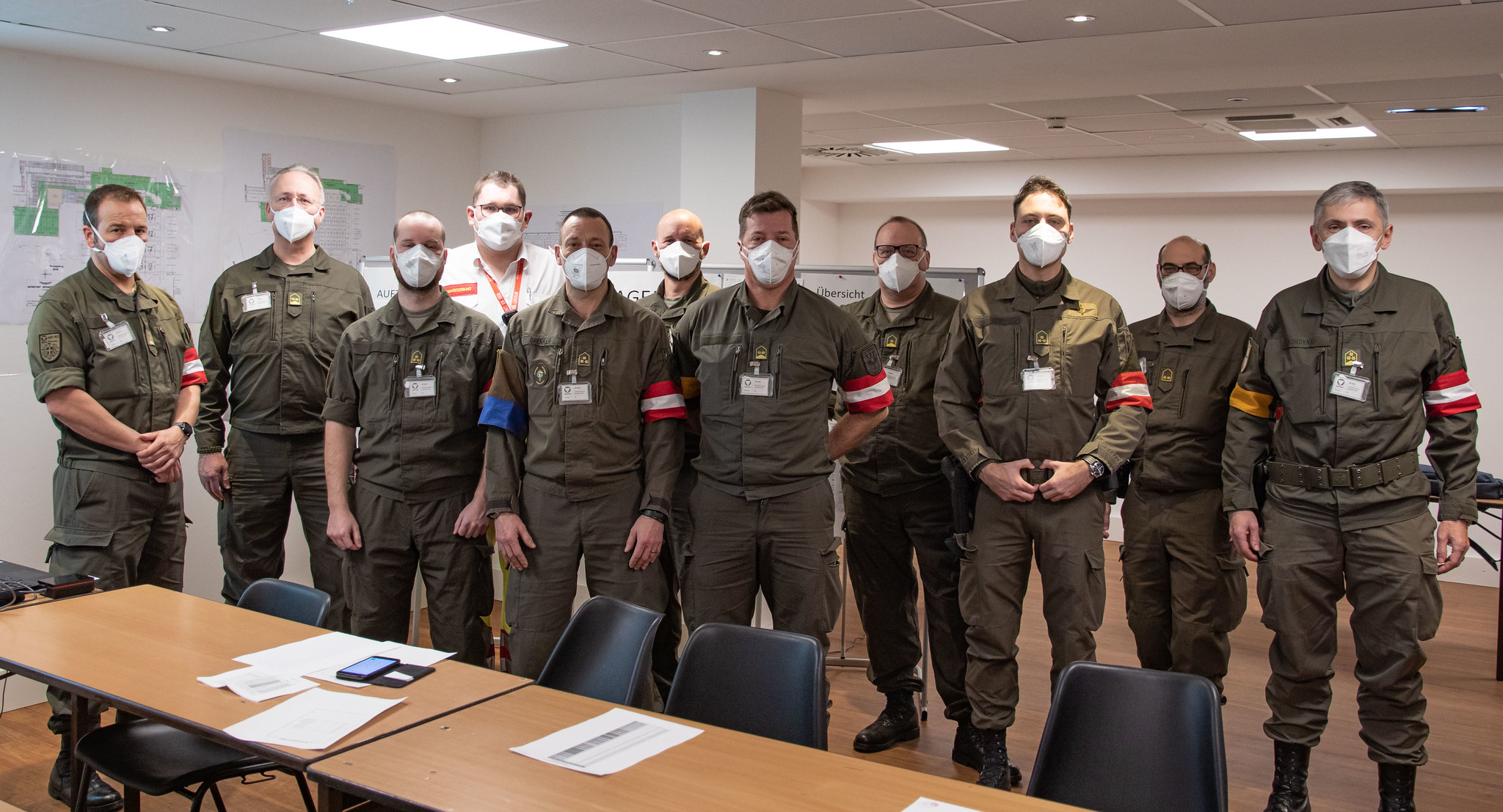 1) Der Führungsstab des Einsatzes in der Wiener Stadthalle, rechts Oberst Stefan Koroknai.