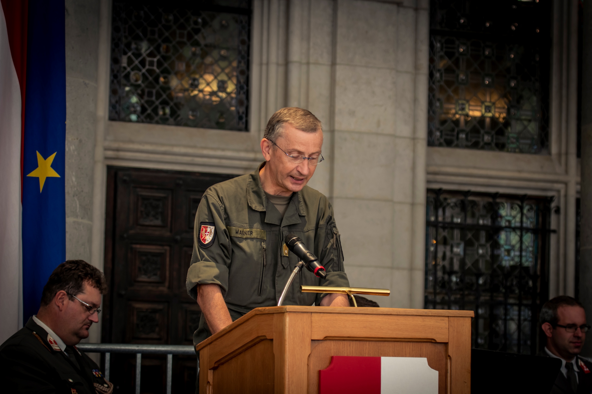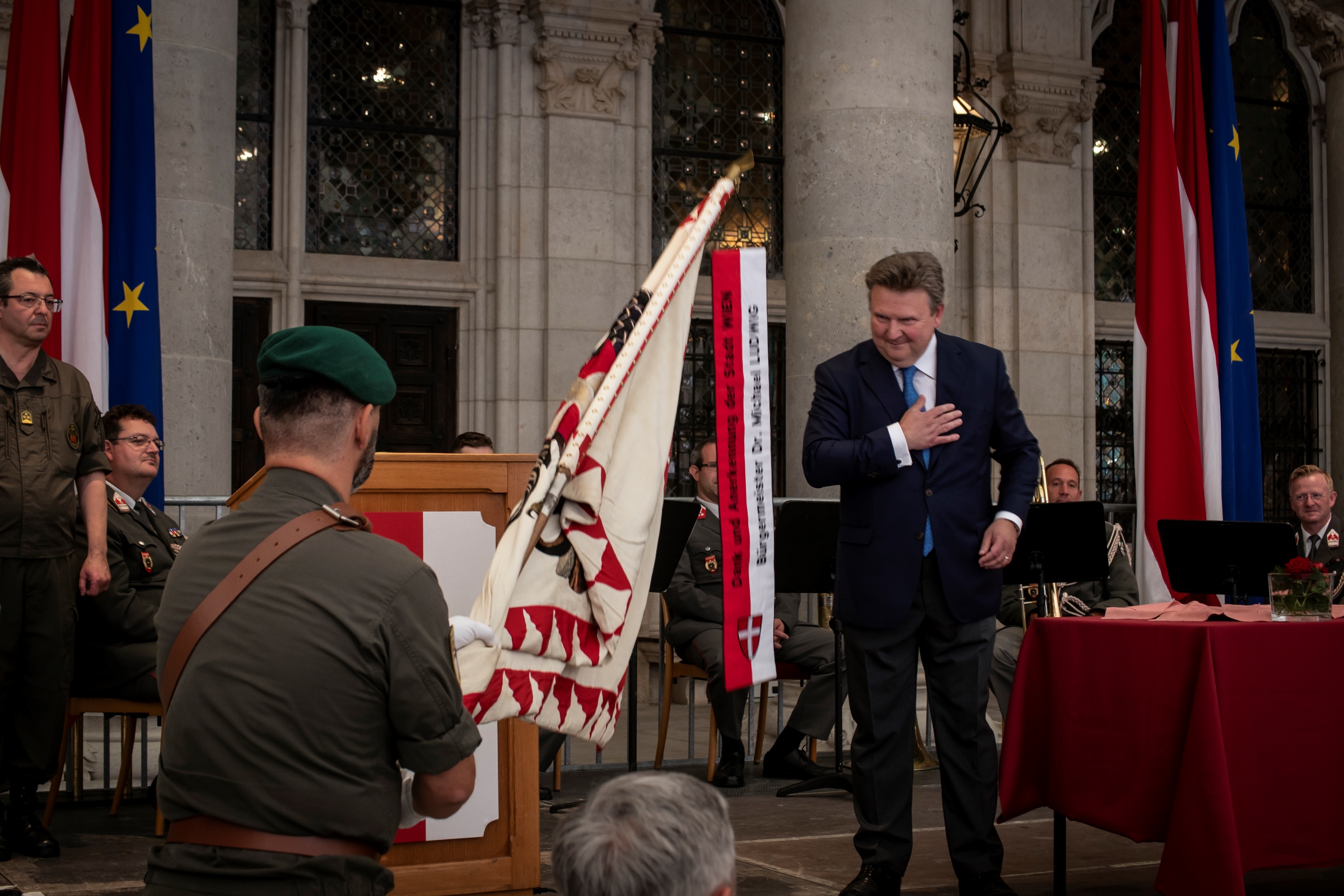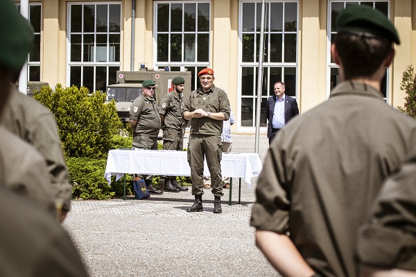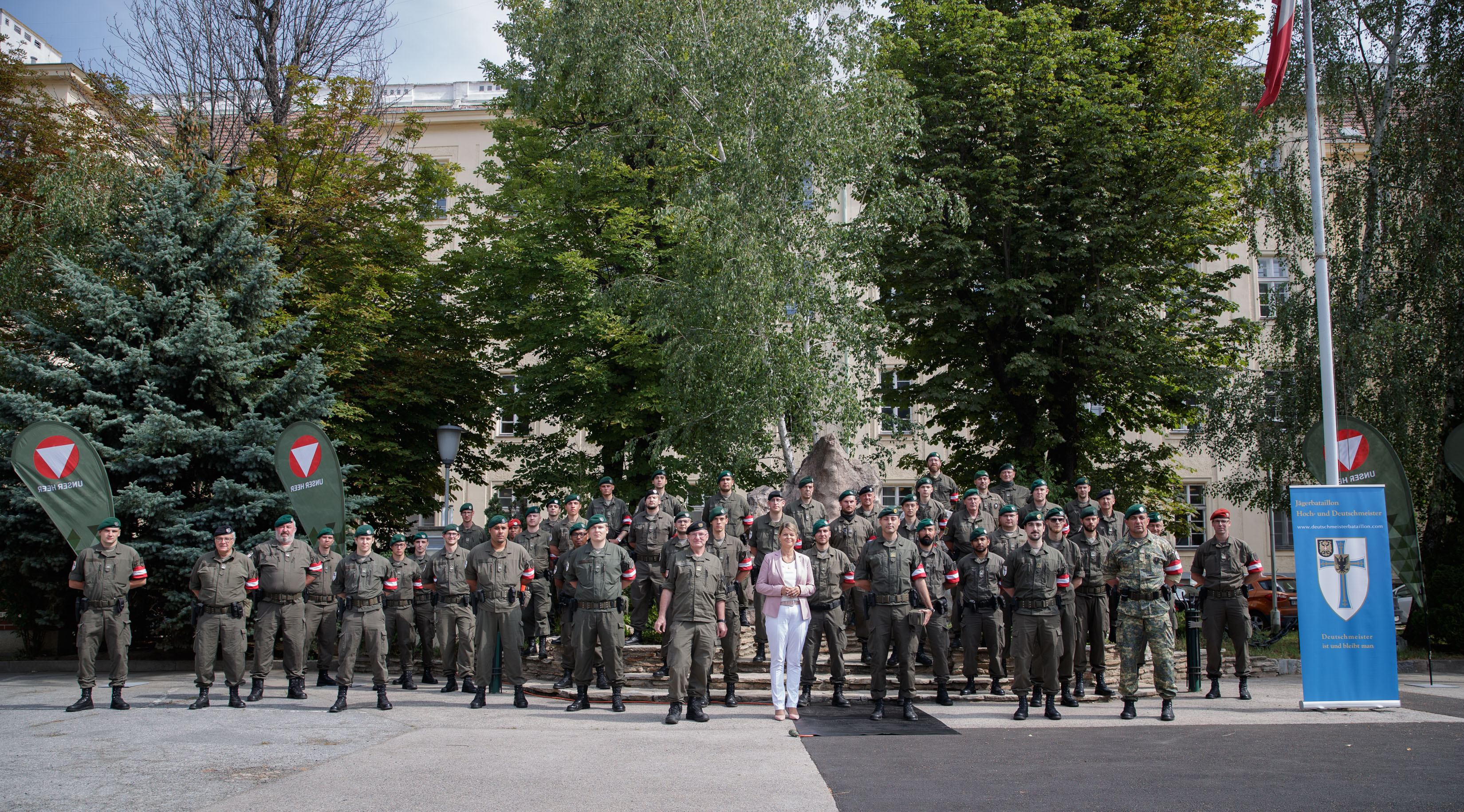 "Ich bedanke mich für die großartige Zusammenarbeit unseres Stabes mit den Einsatzkräften des Samariterbundes Wien, der Feuerwehr, der Polizei und aller zivilen Kräfte. Wir haben damit auch eines klar bewiesen: Auf die Miliz ist Verlass. Dafür ein herzliches Danke!", sagte Oberst Stefan Koroknai bei der Verabschiedung seiner Milizsoldaten und Überreichung der Einsatzmedaillen nach Beendigung des Einsatzes in der Wiener Maria Theresien-Kaserne.